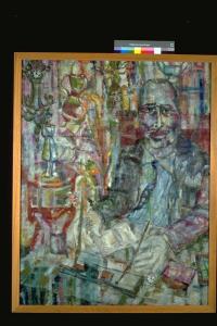- NOTIZIE STORICO CRITICHE Al XIV° Premio Suzzara (1961) vinse il vitello e una medaglia d'oro.\nIl personaggio principale, i due soggetti femminili e pochi altri oggetti emergono improvvisamente da una miriade di segni multicolori, il cui trattamento risente dell'Informale. L'espressione del professionista è stralunata, rasentando un tipo di figurazione surrealista.