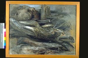 - NOTIZIE STORICO CRITICHE Al XV° Premio Suzzara (1962) vinse IL MAIALE\nL'opera fa parte della stagione di più tipica espressività naturalistica della produzione di questo artista, in cui le forme rasentano quasi l'informale, senza però mai arrivare a poterne essere ascritto.\nL'artista è nato a Reggio Emilia nel 1917. Allievo di Guidi e Morandi all'Accademia di Belle Arti di Bologna, ha in seguito insegnato alla scuola di disegno "Chierici" di Reggio Emilia. Ha esposto per la prima volta nel '48 a Bologna, alla Mostra interprovinciale d'arte dell'Emilia romagna; in seguito, ha partecipato a numerose altre esposizioni. All'inizio degli anni Quaranta il suo è uno stile realista, salvo poi avvicinasi, alla fine dei Cinquanta, all'informale. Nella sua produzione successiva Leonardi dimostra di essere diventato un vero pittore "naturalista", che trova la sua ispirazione nel mondo contadino e che fa del rapporto privilegiato con la natura la tematica centrale della propria produzione.