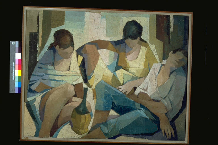 - NOTIZIE STORICO CRITICHE Al XV° Premio Suzzara (1962) vinse un frigorifero FIAT, una capretta e L. 25.000.\nOpera inseribile nell'influenza post-cubista. Pennellata larga e materica, con concentrazione di colore in determinati punti. Larghe campiture dipinte a colori generalmente chiari, assenza di contestualizzazione ambientale .\nL'artista nasce a Firenze nel 1924, da una famiglia di intellettuali. All'inizio degli anni Cinquanta si trasferisce a roma, ove conosce le ricerche neocubiste, che lo influenzeranno, assieme alla ricerca tonale della Scuola Romana. Dopo aver partecipato alla VIII Quadriennale, nel 1960 si sposta a Milano. In questo periodo la sua pittura si volge verso una narrazione libera e aperrta, più vicina alle suggestioni ambientali ed all'intimismo raccolto. Pur rifuggendo dalle mostre ufficiali, è presente con numerose personali in Italia, in Francia, in Germania, negli USA, in Svizzera, in Sud Africa.