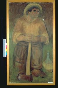 Contadino. Figura di contadino stante appoggiato ad un'ascia