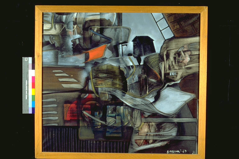 - NOTIZIE STORICO CRITICHE Al XVI° Premio Suzzara (1963) vinse 25 kg di salumi, dei mobili, tre casse di bottiglie e una forma di formaggio grana.\nNell'opera si sovrappongono, interagiscono l'uno con l'altro, elementi diversi, cose lasciate e abbandonate , assieme a strade urbane, assieme a uomini piccoli ed alienati, assieme a sedie a brandelli, oscuri teschi affiranti dalle ombre che l'artista crea con una cognizione ed una educazione pittorica che mostra le suggestioni di Vespignani , Atardi e Sughi, ma anche certi esiti di Ferroni e Martinelli.La composizione si risolve quindi in uno spettacolo desolato e patetico, con motivi di solitudine e di angoscia, da cui è però assente qualsiasi motivo di cinismo.\nL'artista è nato nella Repubblica di San MArino nel 1938. Nel 1966 alla Libreria Einaudi esopone una serie di opere dal titolo: "La contestazione autorizzata", temi sviluppati poi nelle mostre personali alla Galleria Bergamini (1978) e alla Galleria Schwarz di Milano nel 1970. Faranno seguito alcune mostre nelle quali l'artista cercherà di verificare la vita di alcuni personaggi della storia delle rivoluzioni ed i linguaggi artistici legati al momento e agli avvenimenti di quei tempi. Dall'inizio degli anni Ottanta i dedicherà al paesaggio, esponendo nel 1982 alla Galeria Bergamini , con prefazione di Renato Guttuso e di Bruno Corà\n\nL'artista nasce a San Marino nel 1938. Milanese d'adozione, pittore; suoi segni caratteristici sono la fedeltà "fotografica" nella realizzazione dei soggetti ed una tavolozza brillante, spesso fosforescente, carica di riferimenti simbolici. Attento e sensibile interprete dei grandi eventi sociali e politici del XX secolo, ha dipinto cicli ed immagini singole che ne enfatizzano il senso e l'importanza talora rivoluzionaria. Celebre la sua serie dedicata a "La Rosa ed il Leone" (Rosa Luxembourg e Leone Trotzsky). Altrettanto note le sue immagini dedicate a Giuseppe Garibaldi ed ai protagonisti della cultura nordamericana del dopoguerra.