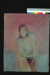 - NOTIZIE STORICO CRITICHE La figura è resa con pennallate sottili e veloci, convulse, il volto è quasi in movimento, effetto conferito grazie ai particolari del viso appena abbozzati, e a piani spaziali intersecantesi. Diversi strati di colore concorrono alla definizione del personaggio: da una base scura, si prosegue, per accumulazione di tratti, alla giustapposizione di un livello di gialli, di rossi, per terminare col rosa finale.\nL'artista nasce a Giulianova (TE) nel 1923. Reggiano d'adozione, arriva a Reggio Emilia nel 1947. Sorretto da uno spiccato senso del colore, è un artista decisamente prolifico e le sue opere sono molto diffuse tra collezionisti e mercanti. Il suo stile spazia dal neorealismo degli anni Cinquanta all'informale dei periodi successivi, sempre attento a recepire nuovi suggerimenti e a cimentarsi in altrettante proposte.