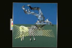 - NOTIZIE STORICO CRITICHE Al XXIII° Premio Suzzara (1970) vinse il premio acquisto.\nLa composizione mostra una suggestione pop nella suddivisione netta della cromia generale in due metà: la superiore azzurra e l'inferiore verde; nell'inserimento del rigato verde obliquo e nell'accostamento di elementi inverosimili richiama il surrealismo. La figura umana, così come gli animali, sono resi con tratto corrusco, che mostra la conoscenza di tutta una tradizione di figurazione e di resa tonale. \nL'artista nasce a Castel San Giovanni (Piacenza) nel 1941. Vive e lavora a Milano e ad Albisola. Pittore e ceramista. Ha esposto alla Biennale di Parigi, alla Triennale di Milano e in moltissime gallerie e musei in Italia e all'estero. Il suo linguaggio esprime un ricco contenuto figurale attraverso icone oniriche e poeticamente espressive. Ha ottenuto il I° Premio ex aequo con Giorgio Bonelli nella Ia edizione del Concorso della ceramica di Savona con la struttura "Piccolo concerto per cielo e terra".