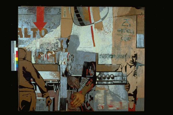 - NOTIZIE STORICO CRITICHE Opera che si riallaccia al clima pop internazionale, specialmente per l'utilizzo della figura umana tratta dai fumetti e dello sfondo puntinato, analogamente agli esempi di Lichtenstein. E' inoltre evidente l'elemento del collage con frammenti tratti dall'immaginario visivo di massa, in questo caso attrverso la riproposizione di parti di imballaggi, vivacemente dipinte.