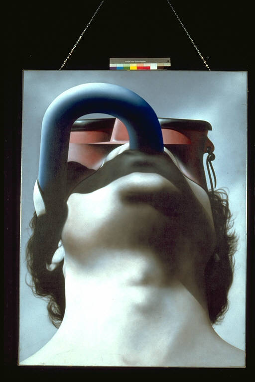 - NOTIZIE STORICO CRITICHE Al XXVI° Premio Suzzara (1973) vinse il puledro, il vitello e il maiale ex-aequo con Guidi e Vangi\nL'opera si inserisce nella serie dei "Sub" del 1973. La suggestione della fotografia è evidente, sia nel taglio dato alla composizione, da primo piano fotografico, sia nel verismo della rappresentazione. Ma l'aura sospesa ed immota, fatta di luci raffinate e tinte basse, sottintende anche un influsso della metafisica.\nL'artista è nato a Cornuda (TV) nel 1938; legato al mondo dell'immagine di impianto oggettivo, ha sviluppato un discorso sulla consapevolezza dell'artista che sa di non poter risolvere i problemi del mondo per via estetica (Solmi), ma con il proposito di intervenire criticamente sulla realtà proponendo una immagine aleatoria e contradditoria nell'apparente semplicità (Morosini): questa coscienza critica determina quella forma di "gigantismo" che è tipica ddelle sue opere e trasforma in manichino ogni prodotto di consumo.