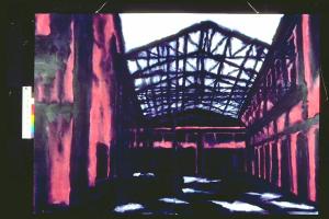 - NOTIZIE STORICO CRITICHE Al XXXVIII° Premio Suzzara (1998) vinse il premio acquisto ex-aequo con Crociani, Ibanez, Paz.\nL'autore rappresenta uno scenario di archeologia industriale: la fabbrica non è più il simbolo del dinamismo futurista, ma come realtà abbandonata, una sorta di paesaggio limite, emblematico della crisi della nostra contemporaneità. Viene dispiegato infatti sulla tela un edificio dove piani e prospettive si sovrappongono e i colori viola e blu creano atmosfere inquietanti. \nL'artista nasce nel 1966 a Modena. Si forma frequentando la scena della controcultura punk e della musica indipendente della prima metà degli anni Ottanta. In questo ambiente culturale esordisce come disegnatore per diverse fanzines, per la rivista "Frigidaire" e la casa editrice Stampa Alternativa. In seguito, si dedica a lavori di più ampio respiro pittorico che lo portano , nel 1990, alla Biennale dei giovani artisti dell'Europa Mediterranea a Marsiglia. Negli anni seguenti tiene varie mostre in Italia. Nel 1997 è invitato alla rassegna Aperto 97 del Trevi flash art Museum; tiene inoltre una personale a torino e allestisce uno spettacolo visivo al Museo Pecci di Prato. L'anno successivo partecipa alla collettiva dedicata al Nuovo Ritratto Italiano di Milano; tiene un'importante personale ai Chiostri di San Pietro di Reggio Emilia e altre mostre gli vengono dedicate da varie gallerie.