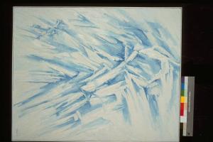 - NOTIZIE STORICO CRITICHE Da personale 1987. Opera in cui l'artista effettua una trascrizione da Vermeer, mantenendone inalterato il titolo, ma metendo sulla tela i colori , che si limitano al bianco ed all'azzurro, come corrispondenze arbitrarie della memoria, in un corpo cromatico legato alla luce ed ai valori luminosi. La figura si presenta come una immagine asratta, i rapporti compositivi come verità metaforiche sempre in bilico. Della posizione delle figure di Vermeer è rimasta solo l'apparenza; il resto è consegnato alla lezione post- cubista o a certi esiti astratti che fissano l'immagine in strutture variamente ripetute o spostate di minimi accenti.\nL'artista è nata a Quistello. Si forma come pittrice alla scuola dei maestri G. Perina e G. Gorni, pur continuando gli studi regolari che la portano a una laurea scientifica. Alterna l'intrapresa attività di ricercatrice presso l'Università di Ferrara all'attività pittorica, frequentando anche la scuola del nudo presso l'Accademia delle Belle arti di Bologna, fino a quando, nel 1982, lascia definitivamente la carriera scientifica per dedicarsi completamente alla pittura.