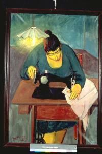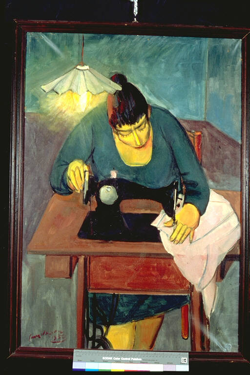 La cucitrice. Figura femminile al lavoro sulla macchina da cucire