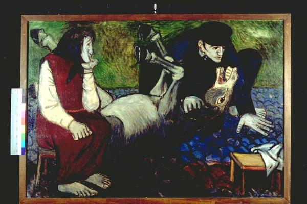 La bestia morente. Una coppia di contadini assiste un'asino agonzzante