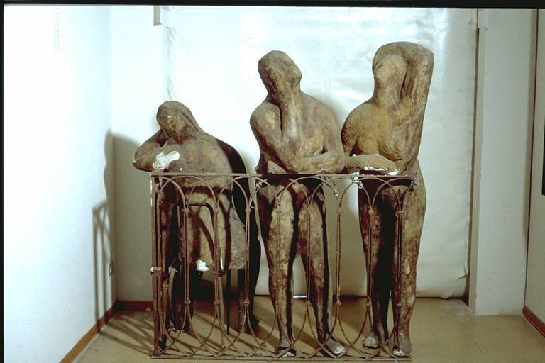 Donne al balcone. Due figure appoggiate ad una balaustra; una terza seduta