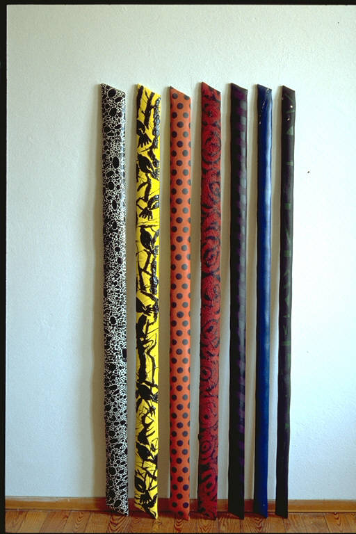 Sequenza. Sette elementi verticali decorati in modi diversi
