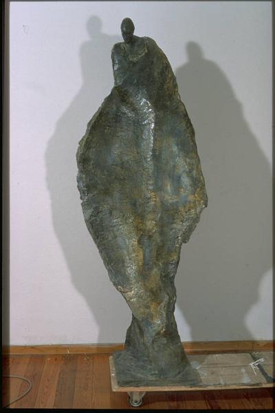 - NOTIZIE STORICO CRITICHE Al XXX° Premio Suzzara (1990) vinse il premio acquisto.\nLa scultura, semplice e monumentale, onirica e solenne, presenta un'alta tensione della superficie, resa attraverso patine ed interventi pittorici. Le ruvidezze e le scabrosità della superficie compatta emergono da una una massa piena e potente, a cui fa da contrappunto la piccola testa, che declina la forma assoluta del busto in chiave ieratica.\nDopo essersi diplomato presso il Liceo Artistico di Bologna, consegue la licenza del corso di scultura presso l'Accademia di Belle Arti nella medesima città. Molteplici esperienze di lavoro e le sperimentazioni di materiali diversi quali il bronzo, la terracotta e le resine patinate, arricchiscono la sua formazione, e parallelamente all'attività scultorea porta avanti anche una ricca produzione pittorica, che risente delle stesse riflessioni di ricerca presenti nella produzione plastica, costantemente indirizzate ad individuare una ricca vibrazione delle superfici. Nel 1983 esordisce in campo espositivo nell'ambito dello Spazio giovani dell'Expo Arte di Bari. Al 1986 risale la sua prima personale, presso il Chiostro di San Tiburzio a Parma. Due anni dopo consegue il premio Diamantina, mentre negli anni seguenti gli vengono attribuiti altri due importanti riconoscimenti: nel 1990 il Premio Suzzara e nel 1994 il Premio Fiorino d'Oro di Firenze per la scultura. Presente in numerose rassegne collettive, partecipa in particolare alla Mostra internazionale di Scultura presso la Galleria del Leone e l'Hotel Cipriani di Venezia (1995), alla Biennale del Bronzetto di Padova (1995), alla mostra Il Po del 900 a Mesola (1995) e alla esposizione Die Kraft del Bilder a Berlino (1996): preceduto da un testo di Vittorio Sgarbi, nel 1992 partecipa alla collettiva Facce di Bronzo alla Galleria Benassati di Modena. Le presentazioni di Mario De Micheli ed Angelo Andreotti accompagnano la prima monografia dedicata allo scultore, pubblicata nel 1994 dall'editore Corso di Ferrara. La Galleria Stefano Forni di Bologna ospita mostre personali nel 1996 e nel 1997, occasione quest'ultima nella quale viene edita una monografia sull'autore di Alfonso Panzetta (Grafis). Nello stesso 97 è presente anche alla II Rassegna Nazionale di Natura Morta al Museo Sandro Parmeggiani di Renazzo (Ferrara). Tra il 1997 e il 1998 ha esposto alla rassegna itinerante di scultura sacra "Misterium Fascinosum et Tremendum" allestita al Museo Parmeggiani di Renazzo di Cento (Ferrara), alla Chiesa di Cennano a Montevarchi (Arezzo) e alla Fondazione Palazzo Bricherasio a Torino con il patrocinio del Comitato per l'Ostensione Solenne della Sacra Sindone. Ha esposto al Museo delle Mura a Borgotaro (Parma) e nella collettiva "Una piazza per la scultura" nelle vie del centro di Zocca (Modena). Sue opere sono conservate in numerose collezioni private e pubbliche. Nel 1999 vince il Premio Fiorino D'Oro. L'artista è titolare della Cattedra di scultura all'Istituto Statale d'Arte A. Venturi di Modena.