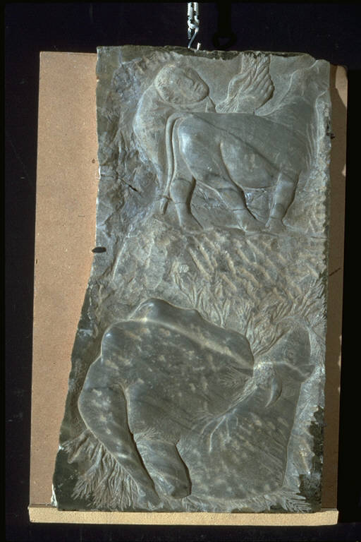 - NOTIZIE STORICO CRITICHE Al III° Premio Suzzara (1950) fu premiato con £. 25.000.\nIl segno grafico sulla lastra è semplificato e tendente ad un effetto di bidimensionalità. Si tratta di un immagine di tipo simbolico in cui ad un lavoratore compare l'immagine di Cristo, o forse della traduzione visiva di un passo delle Sacre Scritture.\nL'artista nasce a Treviso nel 1912: frequenta a Milano la scuola superiore degli artefici di Brera dove insegna poi per 30 anni e 15 al Liceo artistico delle Orsoline di S. Carlo. \nÈ presente in 20 Musei tra cui quelli Vaticani di arte contemporanea, Cà Pesaro a Venezia e recentemente in un'intera saletta, che contiene un centinaio di opere, presso il Museo d'Arte Sacra dei Contemporanei di Villa Clerici a Milano. È riconosciuto artista di levatura internazionale, sin dal primo invito alla Biennale di Venezia (a soli 28 anni) alla quale partecipò per ben sei edizioni. Espone alle quadriennali di Roma; con la Zecca dello Stato le sue opere vengono fatte conoscere nelle maggiori capitali del mondo; la FAO conia 6 sue medaglie ufficiali e ne ospita 42 all'ingresso della sede mondiale di Roma. Dal 1978 è stato Accademico Pontificio. Muore a Ponte di Legno nel 1997.