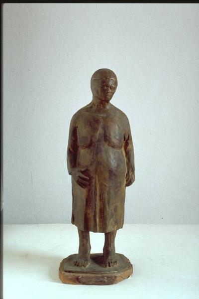 - NOTIZIE STORICO CRITICHE Al X° Premio Suzzara (1957) fu premiato con una macchina da cucire e una medaglia d'argento.\nLa figura, concepita per volumi pieni, risulta compatta e ben ritagliata nello spazio. Uso di un linguaggio di matrice espressionista, che mira alla rappresentazione degli elementi essenziali.L'opera trasmette una visione piuttosto inquietante della maternità.