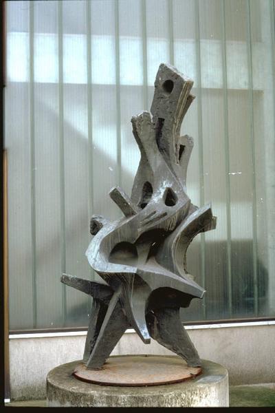 Operaio. Forma avviluppata, con una forte tensione alla verticalità, diversi elementi sporgono dal corpo centrale della scultura