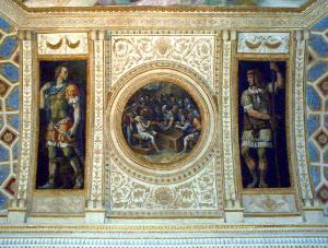 Volta a schifo dipinta con cornici e rilievi decorati a stucco. Il riquadro centrale raffigura Cesare mentre ordina di bruciare le lettere di Pompeo, i due tondi limitrofi mostrano Alessandro che ripone l'Iliade in uno scrigno e la continenza di Scipione, mentre sei figure di Imperatori e Guerrieri scandiscono le vele. Ogni personaggio è inquadrato da cornici con volute e da pannelli in stucco con putti e grifoni. Gli angoli della volta sono risolti con ornati geometrici; nelle losanghe dal fondale azzurro si dispongono tralci vegetali e nei riquadri campiti di rosso emergono rosette dorate. Cappie di putti all'innesto della volta reggono scudi con le imprese di Federico Gonzaga.