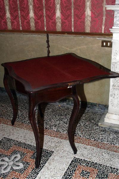 Tavolino da gioco, apribile, con esili gambe sagomate.