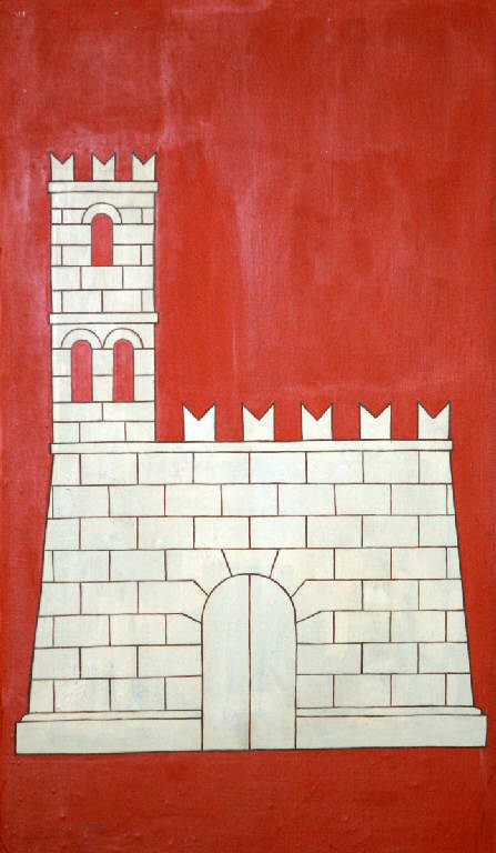 - NOTIZIE STORICO CRITICHE Gli otto stemmi dipinti sul soffitto fanno parte dell'apparato decorativo della stanza che, oltre alle porte lignee con cornici marmoree e sei sovrapporte, comprendeva anche una zoccolatura alla base con rivestimento marmoreo, con lastre di marmo rosso in rilievo sul fondo rosa, a creare una specie di decoro a bugnato e il pavimento a mosaico geometrico. L'insieme si può far risalire alla progettazione degli anni Trenta del Novecento dell'arch. Carlo Morandotti, molto attento alla cura degli interni e non solo alla distribuzione funzionale degli spazi e all'organizzazione formale dei prospetti.