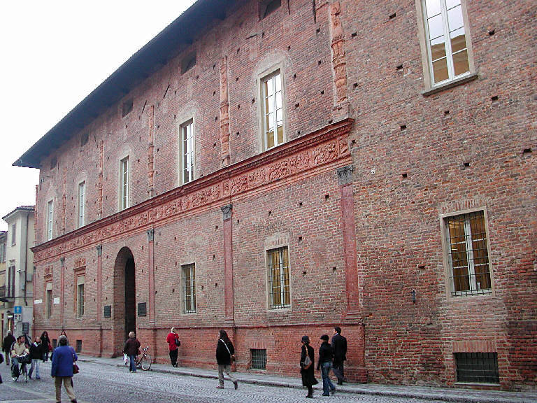 - NOTIZIE STORICO CRITICHE Palazzo Carminali Bottigella rappresenta il più prestigioso esempio di dimora nobiliare rinascimentale conservato in Pavia, ma anche una delle più importanti testimonianze di architettura civile del secondo Quattrocento in Lombardia. La dimora rappresenta un esempio eccellente della fusione tra un'architettura della tradizione lombarda e una importata dagli esempi del grande architetto urbinate Bramante. Il palazzo, di eccezionale qualità, viene edificato in una posizione prestigiosa, affacciandosi sull'antico decumano. L'intitolazione corrente del palazzo deriva dal nome delle due potenti famiglie patrizie, i Carminali e i Bottigella, che in epoche differenti diventano proprietarie della dimora, alla prima delle quali gli storici locali hanno attribuito in un primo tempo la costruzione. In realtà testimonianze documentarie rintracciate da Fagnani attestano che i Carminali, nobili mercanti di origine bergamasca, si stabiliscono a Pavia solo nella metà del Cinquecento e abitano una casa situata in Piazza Grande, nei pressi della parrocchia di S. Maria Gualtieri, non possono quindi essere identificati con i committenti del palazzo, del quale entrano in possesso solo nel XVII secolo. Albertini Ottolenghi su base documentaria rintraccia nei Beccaria, una delle famiglie cittadine di più antica tradizione, i committenti e primi proprietari della nobile dimora (citando il Codice Diplomatico Artistico di Pavia di Maiocchi, spoglio degli atti dei notai pavesi dal 1330 al 1550), notando che tra il 1491 e il 1496, esistono numerosi atti relativi ad una nobile casa, situata in Porta Marengo, parrocchia di San Gabriele (ora piazza del Tribunale), appartenente ai "Magnificorum dominorum Andree et fratrum de Beccheria", dove è attestata la presenza di un cantiere con scultori e lapicidi. Lo spoglio dei documenti porta alle conclusioni che i primi proprietari del palazzo, di cui si abbia notizia dai documenti, sono i Beccaria; che la "domus magna" è già abitata intorno al 1482; che l'unicità della dimora è tale da giustificare l'impiego di lapicidi milanesi per un lungo lasso di tempo, dal 1491 al 1495, in cui intervengono, a partire dal 30 gennaio 1491 Alessandro Bossi, che lavora quotidianamente, tranne i festivi, alle dipendenze di un altro scultore milanese il maestro Domenico Solari (o de Solerio), mentre è attestato in un documento del 22 dicembre 1491, come teste a pagamento d'affitto in casa Beccaria, Martino Fugazza, ingegnere ducale figlio di Francesco e fratello di Gian Pietro, autore del modello ligneo del Duomo pavese; tutto questo può far pensare ad una impresa di lunga durata, di grande impegno e prestigio, quindi una riqualificazione di strutture preesistenti o un rifacimento; Mulas precisa "il proprio carattere organico e razionale, tale da configurarlo come il risultato di una costruzione ex novo probabilmente sostitutiva di una vecchia dimora signorile". La prima fase costruttiva dell'edificio, sul finire del Quattrocento, subisce un'improvvisa interruzione della costruzione e del completamento, forse dovuta a motivi economici dei committenti o alla generale crisi che nel 1499 coinvolge il Ducato di Milano, caduto nelle mani dei francesi. La fabbrica dell'edificio verrebbe quindi a spostarsi verso la fine o l'ultimo decennio del XV secolo, diversamente dalla cronologia comunemente proposta tra 1480 e 1498. La dimora rimane ai Beccaria sino al 1695, quando viene acquistata da Giovanni e Flavio Carminali che promuovono significativi interventi, come l'introduzione del portico retrostante e la creazione del grande scalone d'onore barocco, recante la data 1696, incisa sul pilastrino centrale della balaustra a traforo, ornata da 18 stemmi dei Carminali. Fanno seguito vari passaggi di proprietà e trasformazioni che rendono arduo il recupero dell'assetto originario del palazzo: nel 1763 il marchese Pier Francesco Carminali nomina eredi i cugini fratelli Ottavio e Francesco Malaspina Giorgi di Sannazzaro; nel 1784, il palazzo viene acquistato da mons. Antonio Picchiotti, prevosto del Duomo e Vicario Generale della Curia, alla cui morte nel 1787, passa in eredità al pronipote Baldassarre Bottigella che vi trasferisce la propria residenza, l'archivio di famiglia, le preziose opere d'arte (tra le quali la preziosa tavola del Foppa) e una ricca biblioteca. Inoltre colloca sulle pareti dello scalone d'onore le epigrafi funebri quattrocentesche dei suoi antenati (i fratelli Antonio Simone, Tommaso, Francesco e Menapace), provenienti dalla cappella Bottigella nella soppressa chiesa di S. Tommaso. Nel 1886 alla morte di Baldassarre Bottigella, ultimo discendente di questo casato gentilizio pavese, il palazzo viene ereditato dai nobili Vico e infine acquistato negli anni Cinquanta dall'Associazione Provinciale dei Commercianti. Mentre negli anni Trenta l'area a giardino era stata completamente snaturata con l'inserimento di un complesso adibito a cinema e teatro, attualmente abbattuto.