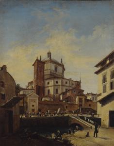 Chiesa di S. Lorenzo vista dalla Vetra. Chiesa di S. Lorenzo a Milano, vista dalla Vetra
