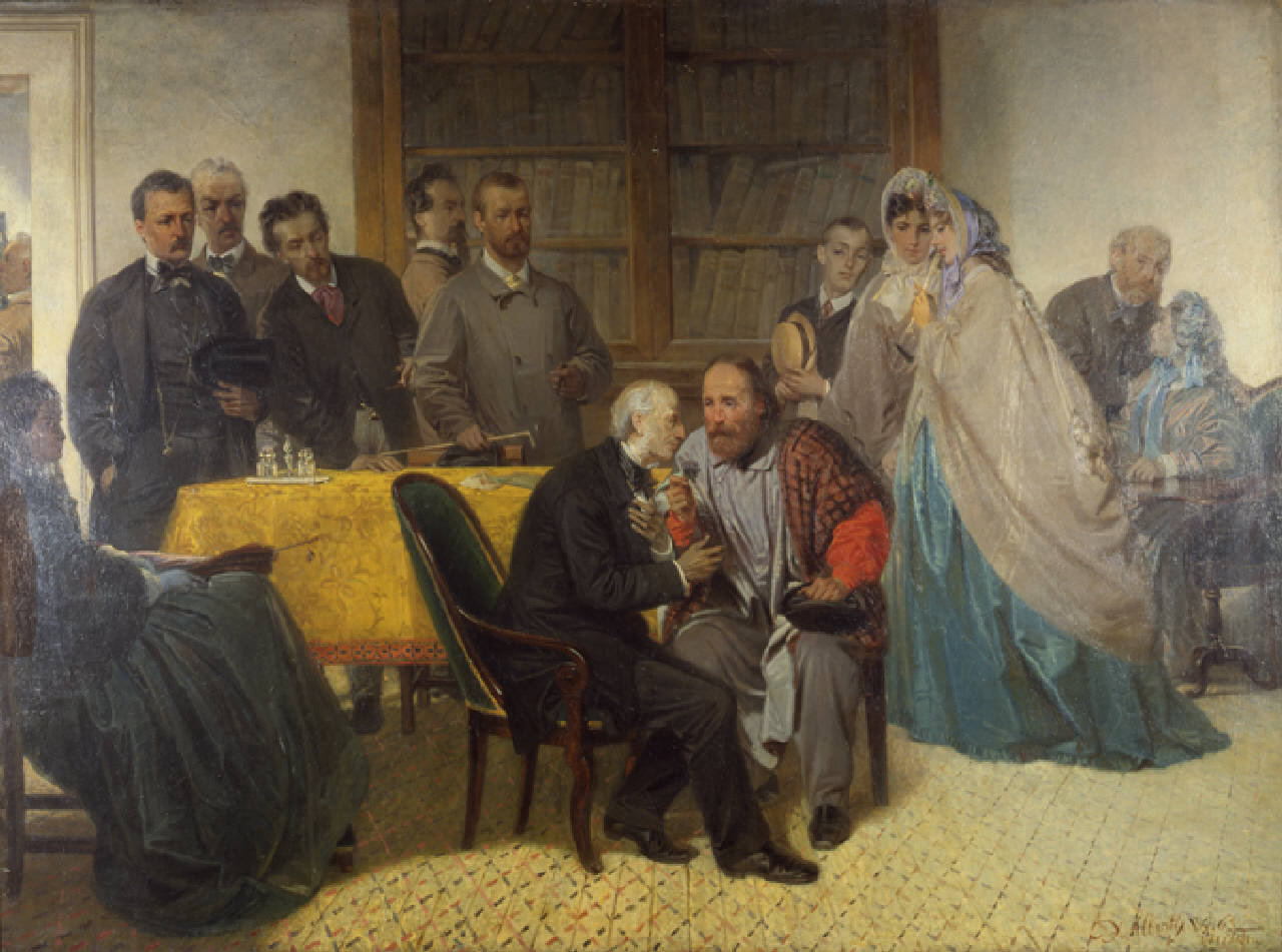 La visita di Garibaldi a Manzoni. Giuseppe Garibaldi visita Alessandro Manzoni nella sua casa