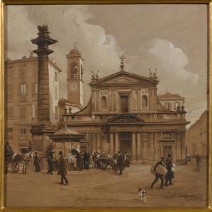San Babila. Piazza San Babila e la chiesa omonima con la facciata seicentesca