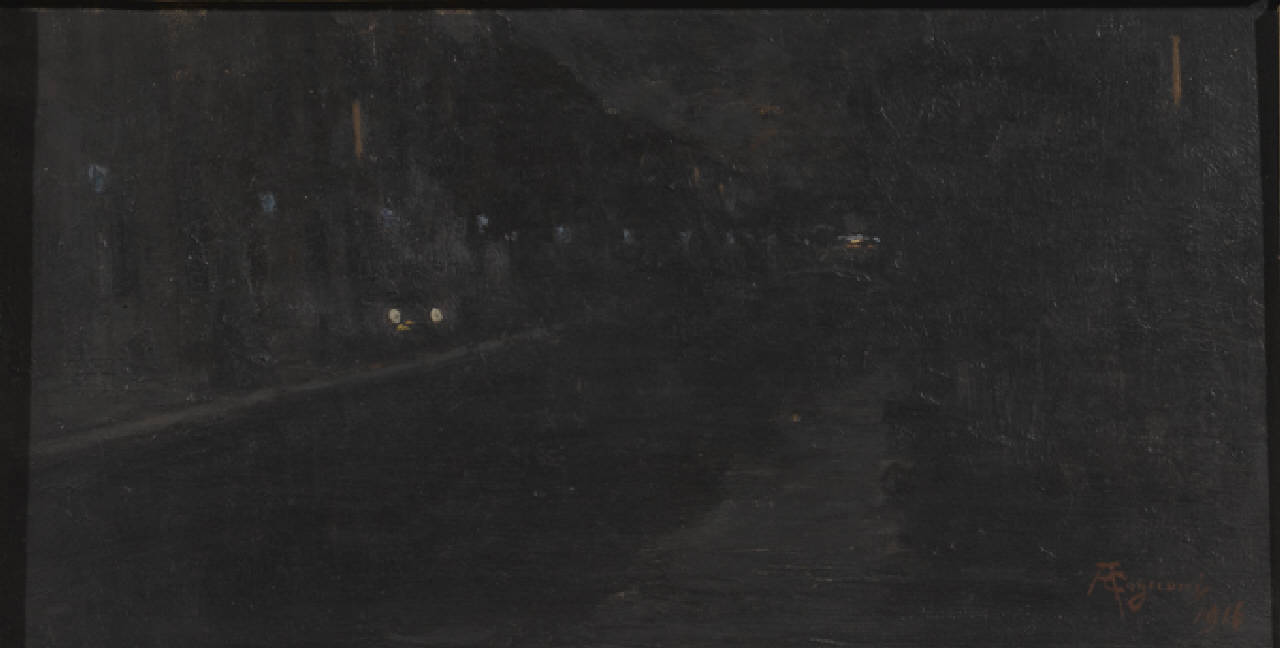 Via Senato di notte durante la guerra - 1916. Via Senato a Milano, di notte, nel 1916