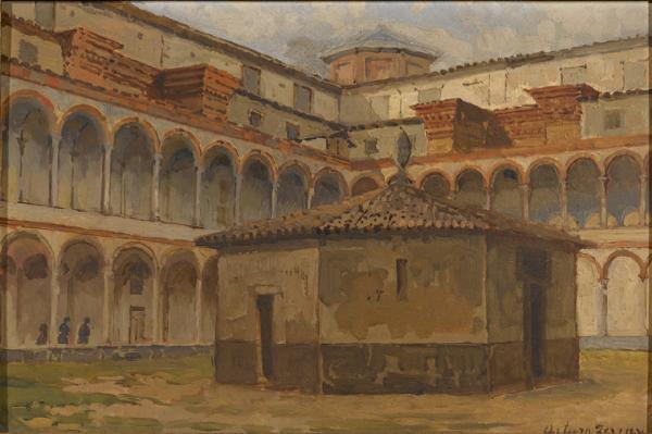 Ospedale Maggiore - Cortile della Ghiacciaia. Il cortile della ghiacciaia nell'Ospedale Maggiore a Milano, verso l'inizio del Novecento