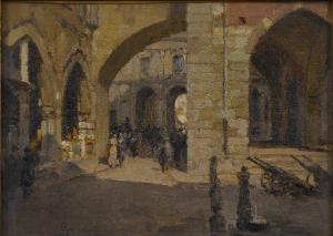Piazza Mercanti all'entrata dell'Archivio Notarile. Sotto passaggio in Piazza Mercanti. Piazza Mercanti fra il Broletto e il Palazzo dei Notai