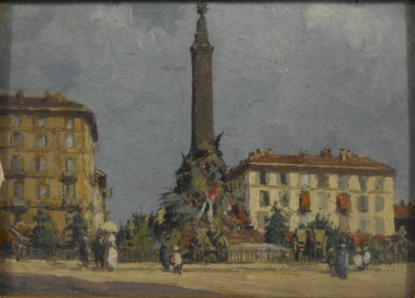 Monumento alle Cinque Giornate con trofei di cannoni austriaci. Monumento alle Cinque Giornate nella celebrazione anniversaria del 1919. Monumento alle Cinque Giornate di Milano nelle celebrazioni anniversarie del marzo 1919