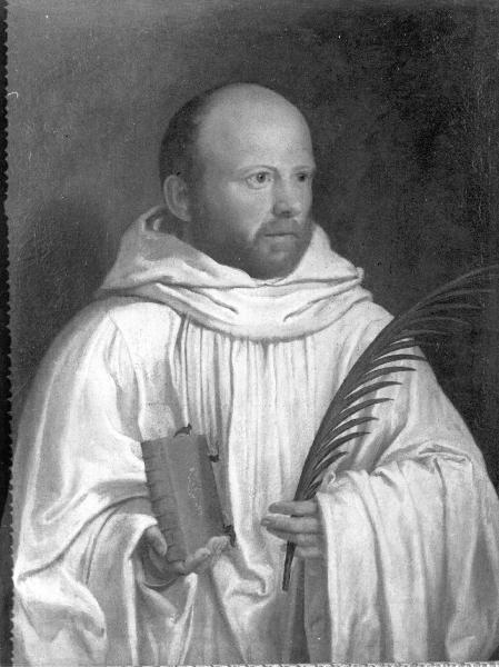 - NOTIZIE STORICO CRITICHE Cornice in legno dorato con ornato ad ogive.\ncfr. il "Catastico" di Saverio Dalla Rosa, che registra in Santa Maria in Organis, tra le pitture esistenti nel Noviziato e nel Monastero (pp. 191): \n"Bella testa di vecchio monaco, e retratto d'uno della famiglia Rambaldi d'Incerto. \nAltri 12 retratti buoni, tra li molti che vi sono di abbati, e monaci. Parte del buon secolo di varj autori". \nL'acquisto da Santa Maria in Organis sarebbe stato effettuato con la mediazione di padre Da Prato (Albertario 2012)\nMarco Albertario.\n\nIl ritratto già è segnalato da A. Avena 1907 con l'indicazione della provenienza da Santa Maria in Organo a Verona (insieme al n. P 83) e il corretto riferimento a Domenico Brusasorci, mai considerato però nella bibliografia e poi ripreso da S. Marinelli 1998 e ribadito da F. Rossi 2000.\nM. Vinco\n\nIl riferimento a Domenico Brusasorci è ribadito da Guzzo 2017, che però ignora parte della bibliografia precedente (considera solo Scalzi 1992, con riferimento a Francesco Beccaruzzi e Marinelli 1998).\nM. Albertario