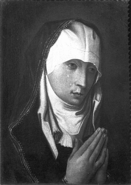 - NOTIZIE STORICO CRITICHE Probabile copia molto antica da Van Der Weiden. Acquisto del conte Luigi Tadini a Verona "dal banchetto a San Tommaso" come opera del Moretto.\nG. A. Scalzi\n\nSi tratta in realtà di una copia antica da Dierich Bouts