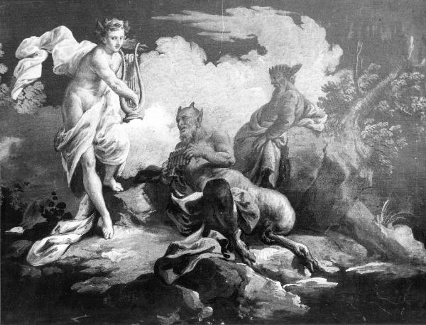 - NOTIZIE STORICO CRITICHE Si pensa abbia fatto parte della decorazione di una portantina, genere nel quale la bottega di Giambattista e dei figli era talvolta impegnata come ha notato Tosato 2011 (la considerazione vale per i nn. P 39, P 40, P 48, P 45, P 52, P 53).\nLa tavoletta P 43 (insieme alla P 50), è attribuita a Nicola Marcola da Tadini (1828, 1837), seguido, in questo, dallo Zannandreis (1891, che però si basa sugli appunti presi da Tadini). Individuata correttamente la mano di Nicola nelle due tavole che, per la tipologia del supporto oltre che per lo stile, si staccano dal gruppo omogeneo sopra definito, posto che la differenza nelle dimensioni e nella tipologia dell'ornato (mancano, in P 43 e P 50, le cornici floreali) qualificano al più una diversa origine, si può concordare con Romin Meneghello 1983 (pp. 76 e 101) nel considerare le due tavolette in esame omogenee alla serie, che sottolinea anche la difficoltà a distinguere, nella produzione a carattere artigianale, la mano dei fratelli. Il riferimento a Marco Marcola è stato ripreso e condiviso da ultimo anche da Tomezzoli 2010.\nMarco Albertario.