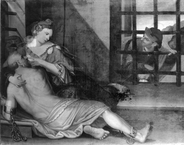- NOTIZIE STORICO CRITICHE Il dipinto è caratterizzato da una forte caricatura fisionomica e da caratteri irrigiditi. Questi elementi fanno pensare ai modi di Domenico Savi, pittore lombardo originario di Viadana e attestato fra il 1656 e il 1659. Un buon confronto può essere instaurato con il ciclo della Passione di Cristo datato 1657, sette lunettoni conservati presso la chiesa di San Giacomo a Soncino (Berzaghi, 1990). Lo stile del pittore, attestato soprattutto a Viadana, è caratterizzato dalla forte attenzione ai volti e alla scena di genere, elementi rintracciabili nella Carità romana.\nG. Cavallini