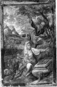 - NOTIZIE STORICO CRITICHE Cornice in legno dorato e modanato.\nIl dipinto replica la tela di Paolo Farinati, Riposo durante la fuga in Egitto, olio su tela, 88x62 cm, 1595 circa, giunto alla Pinacoteca di Brera con il dono di G. Negri, (cfr. Pinacoteca di Brera 1990, pp. 341-344, n. 188).\nMarco Albertario\n\nUna versione del Riposo dalla fuga in Egitto di Paolo Farinati (Varese, collezione privata) è pubblicata da F. Dal Forno, Paolo Farinati 1524-1606, Verona 1965, fig.61.\nSegnalazione di Mattia Vinco (18/02/2014)
