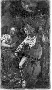 - NOTIZIE STORICO CRITICHE Il dipinto venne acquistato dal conte Tadini dallo "strazzarolo Bastian in Peschiera"per £.2 assieme al n.344. Il quadro formava gli sportelli dell'organo della chiesa delle Cappuccine di Verona (cat.1837, n.91). La segnalazione è accolta da A. Avena 1907\nM. Albertario