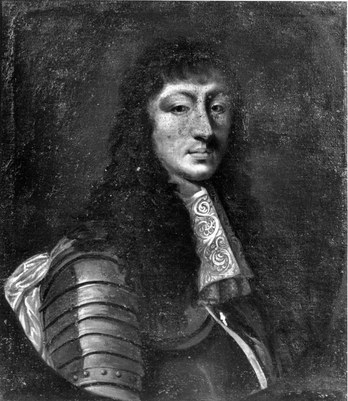 - NOTIZIE STORICO CRITICHE Secondo la ricostruzione proposta da G.A. Scalzi (in Pinacoteca 1966) i sei ritratti in esame (P 468-P 473) decoravano in origine le sale dell'appartamento del conte Luigi Tadini, e quindi pervennero all'Accademia con il Legato del 1829. Nel 1919 furono donati al conte Roberto Vimercati Sanseverino Tadini a titolo di gratitudine per la rinuncia al diritto di abitazione nell'appartamento del piano nobile (seguì l'asta con la dispersione degli arredi). Lo stesso Vimercati Sanseverino li restituì all'Accademia nel 1946. \nIl dipinto, da considerare forse il migliore della serie, ritrae Luigi XIV (1638-1715) re di Francia dal 1643. Il ritratto si data, per confronti con l'iconografia del sovrano, intorno al 1660/1670 circa, e orienta quindi la cronologia dell'intera serie. \nLe tele sono provviste di ricche cornici in legno intagliato, dorato e dipinto, che collegano i ritratti a coppie (P 472 e P 468; P 470 e P 471; P 469-P 473).\nMarco Albertario