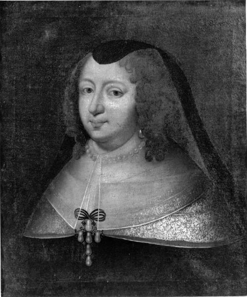 - NOTIZIE STORICO CRITICHE Secondo la ricostruzione proposta da G.A. Scalzi (in Pinacoteca 1966) i sei ritratti in esame (P 468-P 473) decoravano in origine le sale dell'appartamento del conte Luigi Tadini, e quindi pervennero all'Accademia con il Legato del 1829. Nel 1919 furono donati al conte Roberto Vimercati Sanseverino Tadini a titolo di gratitudine per la rinuncia al diritto di abitazione nell'appartamento del piano nobile (seguì l'asta con la dispersione degli arredi). Lo stesso conte li restituì all'Accademia nel 1946. \nIl ritratto rappresenta Anna d'Austria (1601-1666), moglie di Luigi XIII, regina di Francia dal 1615, reggente dal 1643 al 1651, in abito vedovile. La data di morte della sovrana e la presenza, nella serie, di un ritratto di Luigi XIV (P 470) orienta la cronologia della serie intorno al settimo decennio del secolo. \nLe tele sono provviste di ricche cornici in legno intagliato, dorato e dipinto, che collegano i ritratti a coppie (P 472 e P 468; P 470 e P 471; P 469-P 473).\nMarco Albertario