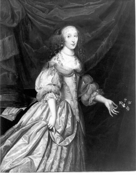 - NOTIZIE STORICO CRITICHE Questo dipinto e il suo pendant (P 485) potrebbero essere identificati con i nn. 2-3 dell'elenco delle opere in vendita proposte da Felice Zitti a Felice Martinoni, con una improbabile identificazione con "La signora Lucia Taglietti e sposo nob. Alessio Martinoni". Nella stessa lettera lo Zitti attesta che "sono due Charron del 1663". \nNello stesso anno, Mauro Pellicioli stende una relazione (13 dicembre 1928, ai nn. 8 e 9) forse in vista della vendita dalla quale si evince una differente (e apparentemente più completa) lettura dell'iscrizione come "C. LORRON FECIT 1633". In quell'elenco, redatto prima dell'intervento di restauro del 1947, l'iscrizione doveva essere ben leggibile, e non credo che possano sussistere dubbi in merito all'identificazione dei due dipinti in esame con i nn. 8 e 9. \nL'iscrizione è riportata ancora in un terzo elenco redatto (un documento non firmato, datato a matita, ai nn. 6-7) dopo l'intervento di foderatura. \nInfine nell'inventario dei beni allegato al testamento (18 febbraio 1954) l'iscrizione è data per esistente (forse era ancora leggibile sotto la foderatura?). Non ha fondamento quindi il riferimento a Nicolas De Largillière attribuito alla valutazione di Pelliccioli dall'anonimo estensore dell'inventario Pinacoteca 1966. (Quest'ultimo peraltro è evocato nella lettera di Pelliccioli, ma solo a proposito dei ritratti di uomo in armatura e dama, P 487. P 488) Il riferimento sarà però ribadito da Angela Ottino Della Chiesa (Comunicazione orale registrata in Pinacoteca 1966). Il riferimento a Nicolas de Largilliere è stato definitivamente escluso da Xavier Salmon (comunicazione orale, 2001).\nNon è mai stata indagata la direzione suggerita dall'iscrizione, Charron o Lorron, che non risulta di facile scioglimento e non ora non è più leggibile.\nIl ritratto di dama mostra una certa somiglianza, come nota Maria Ines Aliverti, con il Ritratto di Enrichetta Maria di Borbone (Parigi 1609 - Colombes, 1669), che sposa nel 1625 Carlo I d'Inghilterra (forse ritratto nel personaggio maschile nella tela che fa da pendant a quella in esame). Questa ipotesi di lettura renderebbe plausibile una datazione agli anni trenta del Seicento piuttosto che agli anni Sessanta.\nMarco Albertario