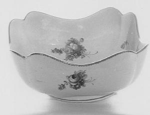Sono rettangolari con base circolare e pareti sagomate, dipinti a mazzetti di fiori "au naturel" sia all'interno che all'esterno, bordo dorato con motivi decorativi a dente di lupo