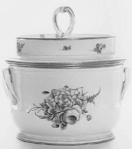 - NOTIZIE STORICO CRITICHE Le due torce stilizzate intrecciate tracciate in blu che compaiono sotto le porcellane del servizio da tavola sono state identificate da Mariolina Olivari con la marca della manifattura di Locré, detta anche "de la Courtille" dal nome del quartiere parigino dove aveva sede. La manifattura era stata fondata nel 1772 in Rue de la Fontaine-au-Roi, a Parigi, da Jean-Baptiste Locré de Roissy che nel luglio 1773 aveva depositato la sua marca, due fiaccole stilizzate incrociate in blu, che opportunamente semplificate possono essere scambiate per la marca di Meissen. Lo stesso fondatore aveva denominato la fabbrica "manifacture de porcellaine allemande" e la stretta somiglianza con Meissen era il punto di forza della sua produzione, sottolineato dall'adozione di un repertorio decorativo, quello dei fiori "au naturel", inventato presso la Manifattura di Vienna ma reso celebre proprio da Meissen. Questa caratteristica era rafforzata dal fatto che il modellatore della fabbrica - e dal 1787 nuovo proprietario della stessa - era Laurent Russinger, che proveniva dalla manifattura tedesca di Höchst (Magonza). \nIl servizio del conte Luigi Tadini, già ritenuto un prodotto di Meissen anche per l'ambigua indicazione "Servizio di Sassonia" con la quale era segnalato sulla nota d'acquisto, purtroppo non datata, rappresenta al meglio la qualità della produzione tanto nelle forme (molte delle quali mutuate da Sèvres), quanto negli ornati, con il raffinato decoro a fiori "au naturel" pure ispirato al decoro di Meissen. La plausibile datazione al 1780-1790 non esclude la possibilità che l'acquisto possa essere avvenuto a Parigi, nel corso del soggiorno del 1802 dopo i Comizi di Lione. \nMarco Albertario