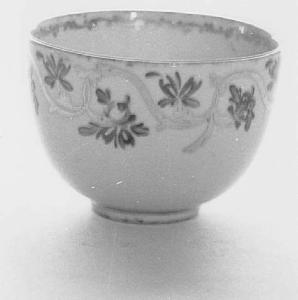 Le tazzine sono a ciotola senza ansa, ornate sul bordo con motivi a viticcio d'oro e piccoli fiori variopinti. All'interno viticcio dorato sul labbro e stella sul fondo