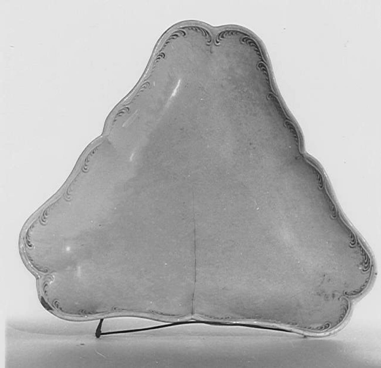 Porcellana bianco avorio con orli sagomati ornati con motivi decorativi a rilievo. Forma triangolare