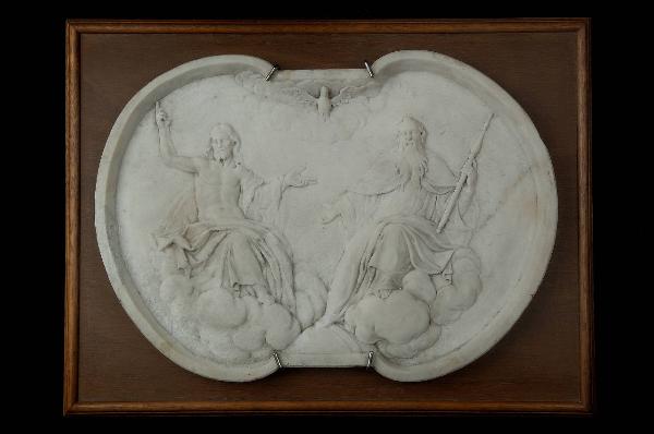 - NOTIZIE STORICO CRITICHE Si ritiene possa provenire da un paliotto d'altare. Mi chiedo anzi se non possa coincidere con quello ricordato dal conte Tadini nella descrizione della cappella: \n"Sotto la mensa si vede un basso rilievo non terminato, rappresentante la Ss. Trinità, opera dei fratelli Fantoni da Roveta". Doveva essere ancora in situ nel 1926, quando è descritto nel volume di A. Sina (cfr. bibliografia), che però riporta la descrizione di G. Conti.\nMarco Albertario