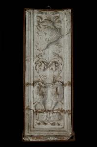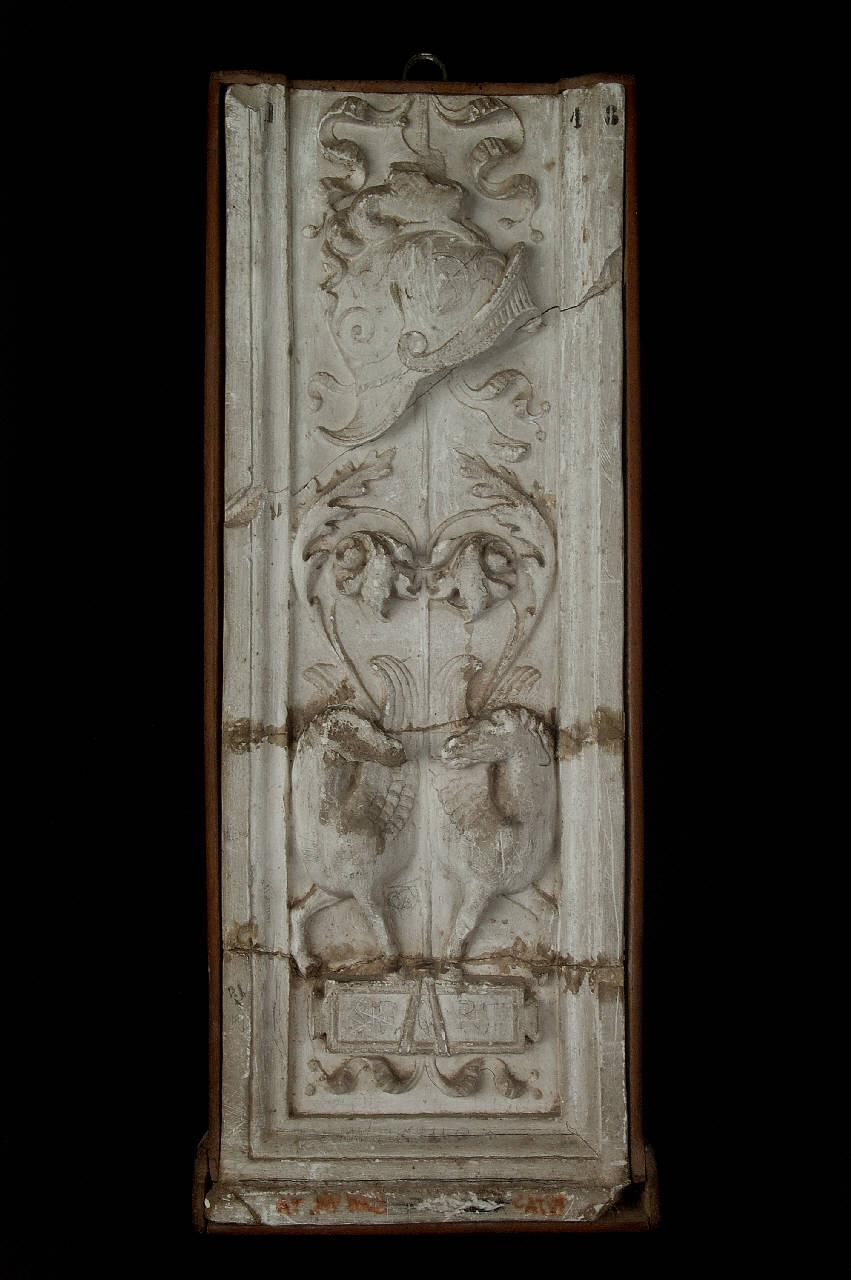 Due grifi e un elmo entro cornice