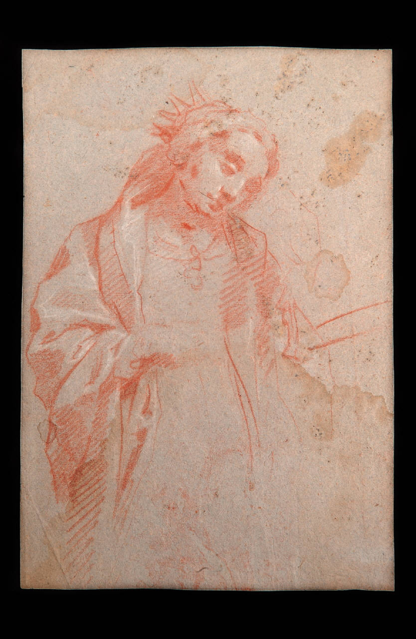 - NOTIZIE STORICO CRITICHE L'esemplare è stato riconosciuto come disegno preparatorio di un'opera conservata nella chiesa di Santa Grata inter Vites di Bergamo; una replica del dipinto è conservata nel Seminario Maggiore di Bergamo. Probabilmente è stato utilizzato anche nella realizzazione della "Visitazione" affrescata in Palazzo Moroni a Bergamo (1655).