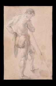 Nudo maschile in piedi con asta