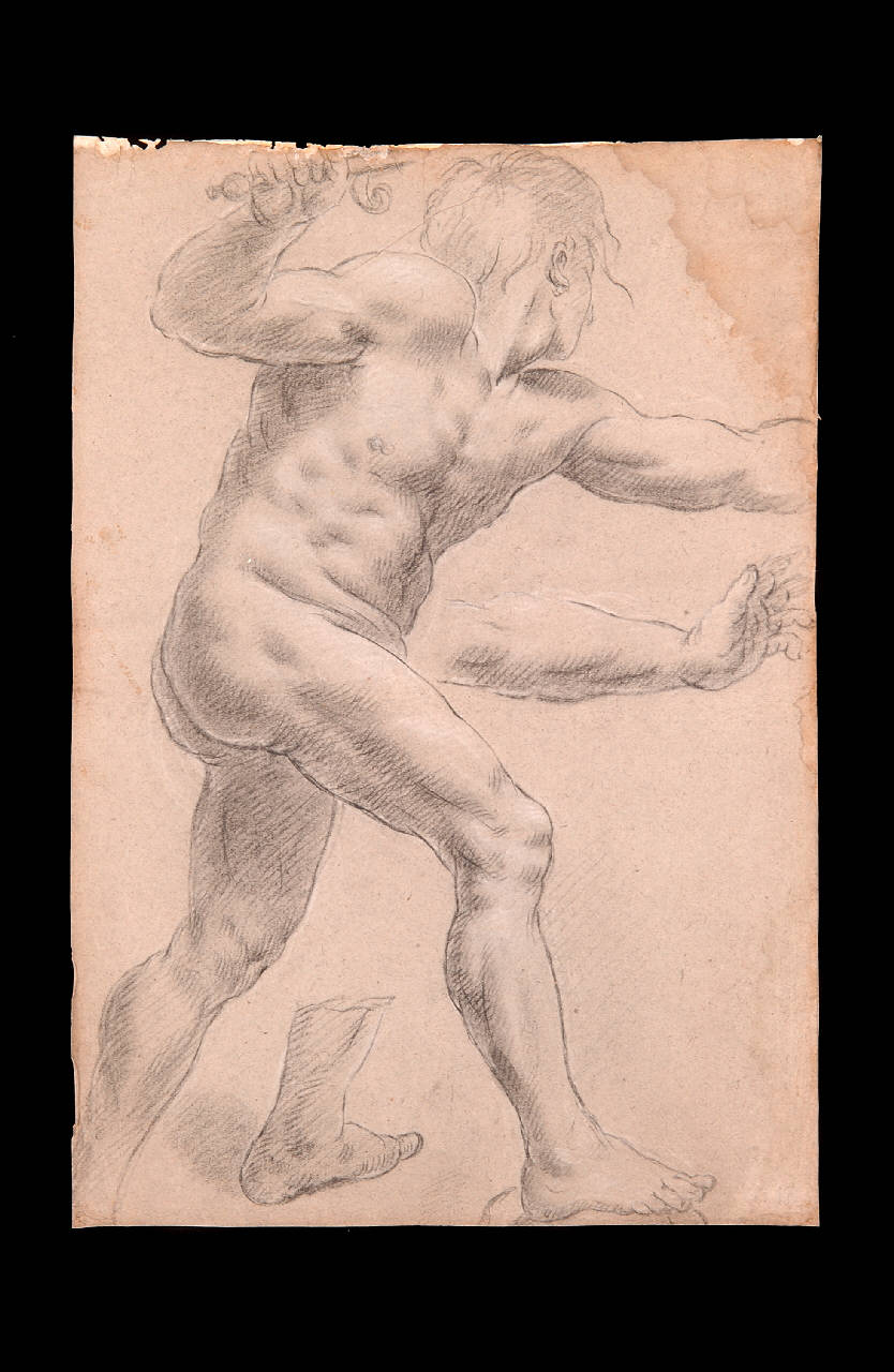 Nudo maschile con pugnale/ Studio di braccio/ Studio di piede