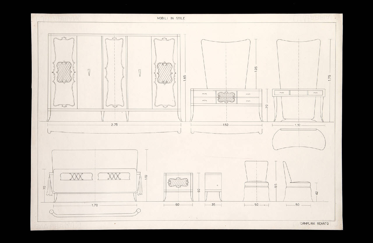 Mobili in stile. Rilievi di mobili