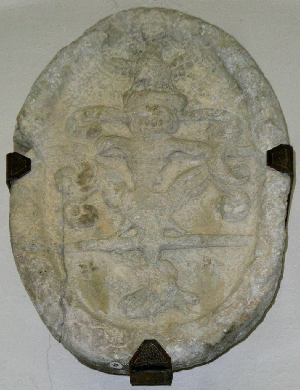 Stemma ovale in pietra scolpita a basso rilievo.